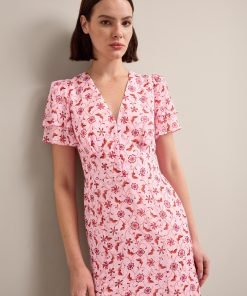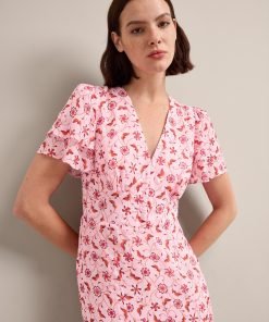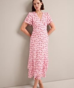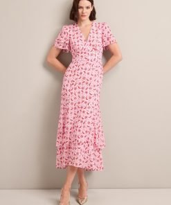 Lotta Gold Metallic Fil Coupé Maxi Dress – Pink Floral Trellis Print