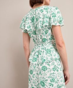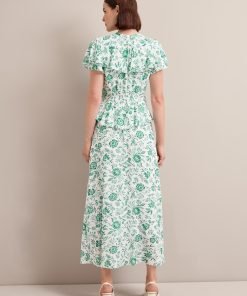 Vivienne Cotton Blend Maxi Dress – Green Palm Floral Print